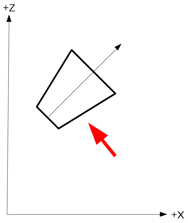 - 通过世界空间中的视锥体坐标,我们现在可以像任何其他对象一样将它们转换为光空间。请记住,光空间与视图空间完全相同,但我们使用光源代替相机。由于我们处理的是没有原点的定向光,因此我们只需要旋转世界,使光方向与正 Z 轴对齐。光的原点可以简单地是光空间坐标系的原点(这意味着我们不需要任何平移)。如果我们使用上图(红色箭头是光方向)来做到这一点,光空间中的级联平截头体应该如下所示: